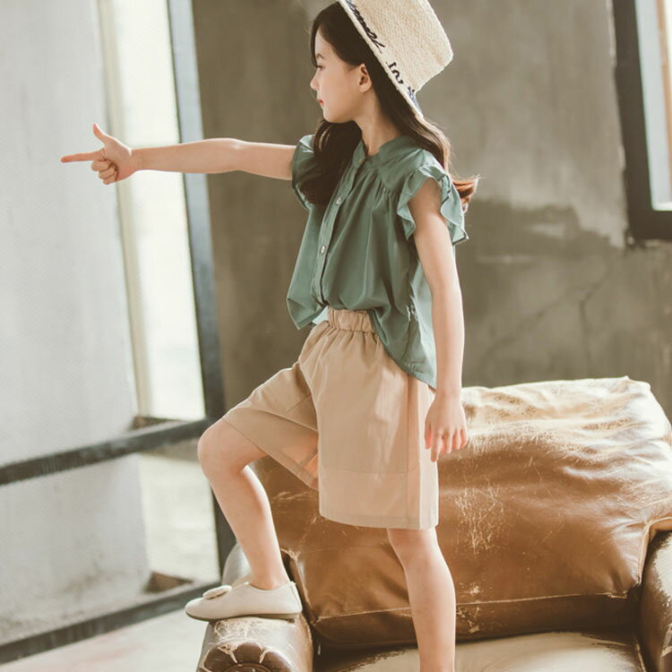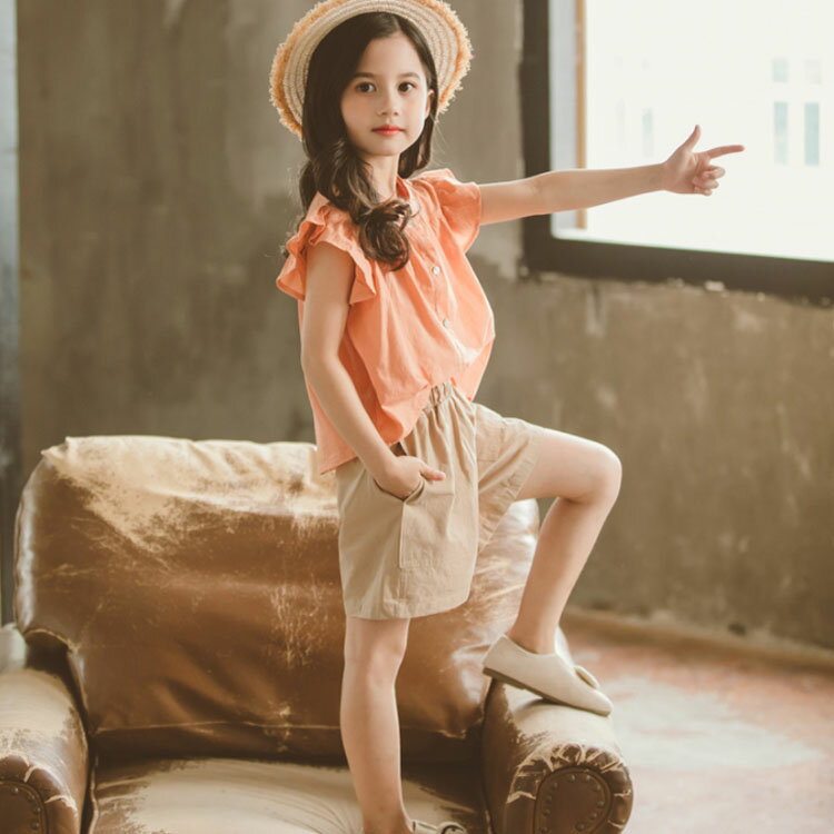 子供服 ブラウス ノースリーブ 女の子 ハーフパンツ 女児 上下2点セット ショートパンツ タンクトップ ジュニア Tシャツ 短パン キッズ