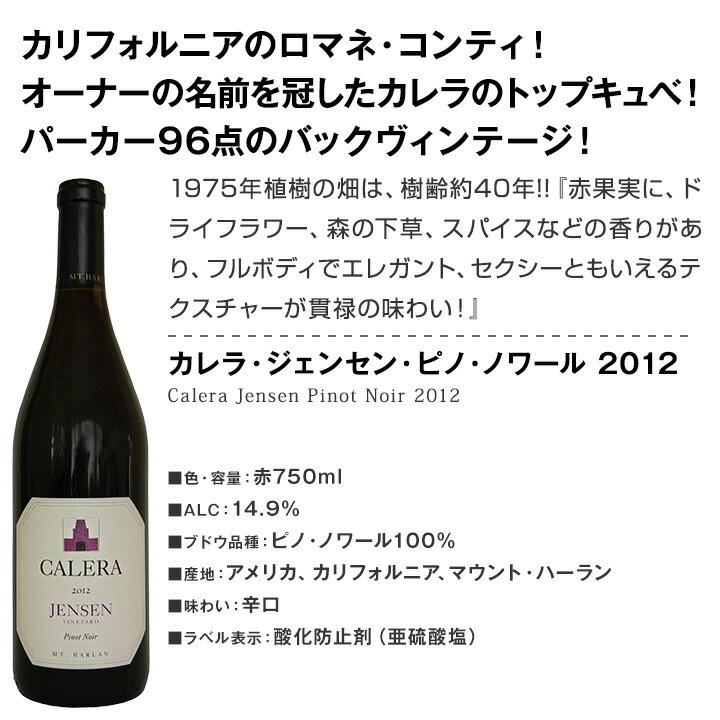 【送料無料】カリフォルニアのロマネコンティ「カレラ ジェンセン」が入った入手困難希少バックヴィンテージ12本セット【北海道・沖縄・離島は追加送料がかかります】[同梱不可]