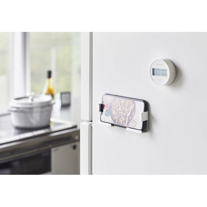 マグネットタブレットホルダー プレート ホワイト 山崎実業 YAMAZAKI シンプル おしゃれ かわいい 便利 キッチン 台所 ランドリー 洗面 タブレット PC スマホ スマートフォン ながら 磁石 スタンド