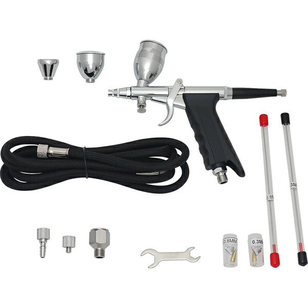 仕 様・ガンタイプグリップ ・ダブルアクション・ノズル径 0.3mm、0.5mm、0.8mm・カップ大中小付き・ホース 1.8m・プラスチックケース入り ・日本語取扱説明書付き 配送方法※宅配便のみでの配送となります。