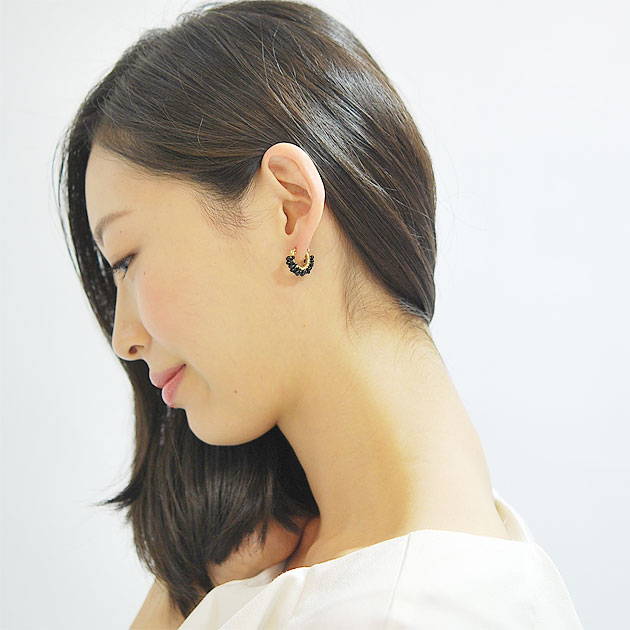 小さいサイズなので、どんなシーンにも使えるのが魅力! ゴールドと小粒の天然石ブラックオニキスの組み合わせが上品でラグジュアリーなデザインです。