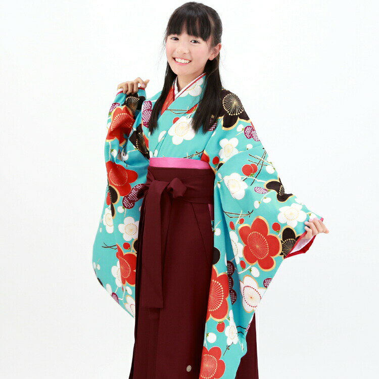 【レンタル】【7泊8日】 卒業式 袴 レンタル 小学生 女の子 レトロ 「ジュニア卒業式袴レンタルセット」 梅 古典柄 ひな祭り 着物 衣装 花 レトロ モダン 水色 青〔消費税込み〕