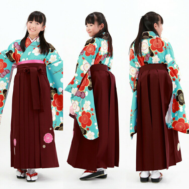 【レンタル】【7泊8日】 卒業式 袴 レンタル 小学生 女の子 レトロ 「ジュニア卒業式袴レンタルセット」 梅 古典柄 ひな祭り 着物 衣装 花 レトロ モダン 水色 青〔消費税込み〕