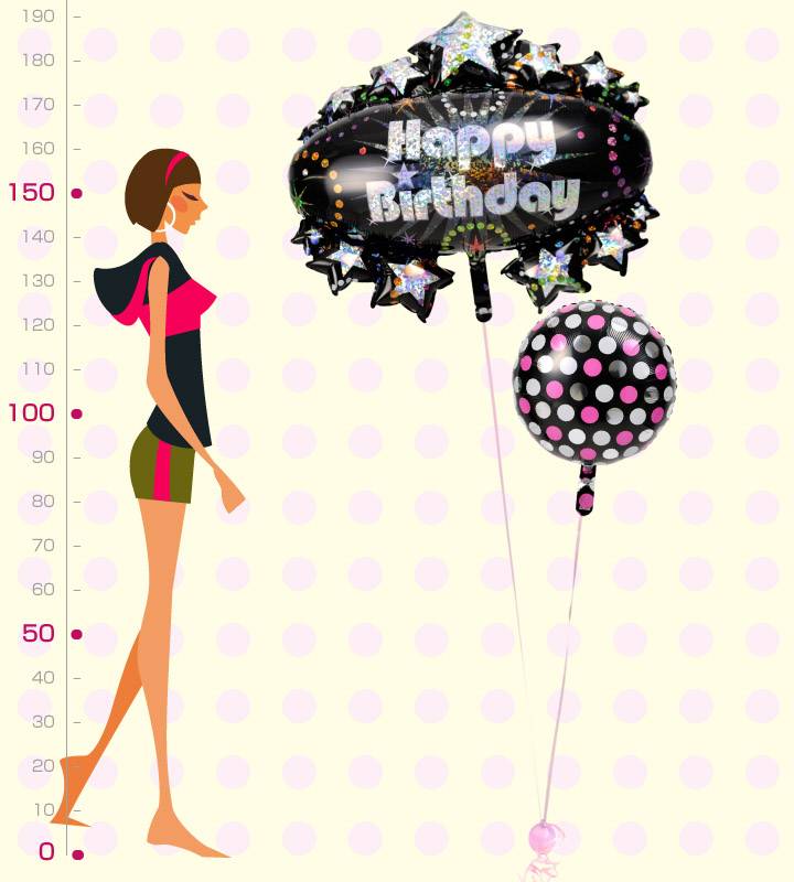 誕生日のお祝いに贈るバルーン電報です 大人キラキラバースデーと大人ドットバルーンの誕生日ブーケ ↓↓↓ バルーン電報の大きさの目安 ↓↓↓ バルーンとメッセージカードを一緒にお届けするバルーン電報には、ご依頼主さまの気持ちがたくさん詰まっています。
